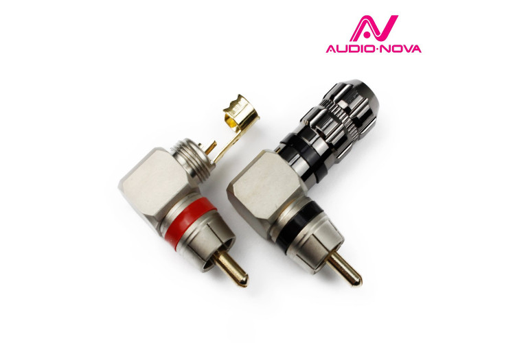 RCA коннектор, угловой, для сигнальных кабелей D=8мм, 1 штука. Полностью МЕДНЫЙ. Высококачественное позолоченное покрытие контактов. Hi-Fi класс.