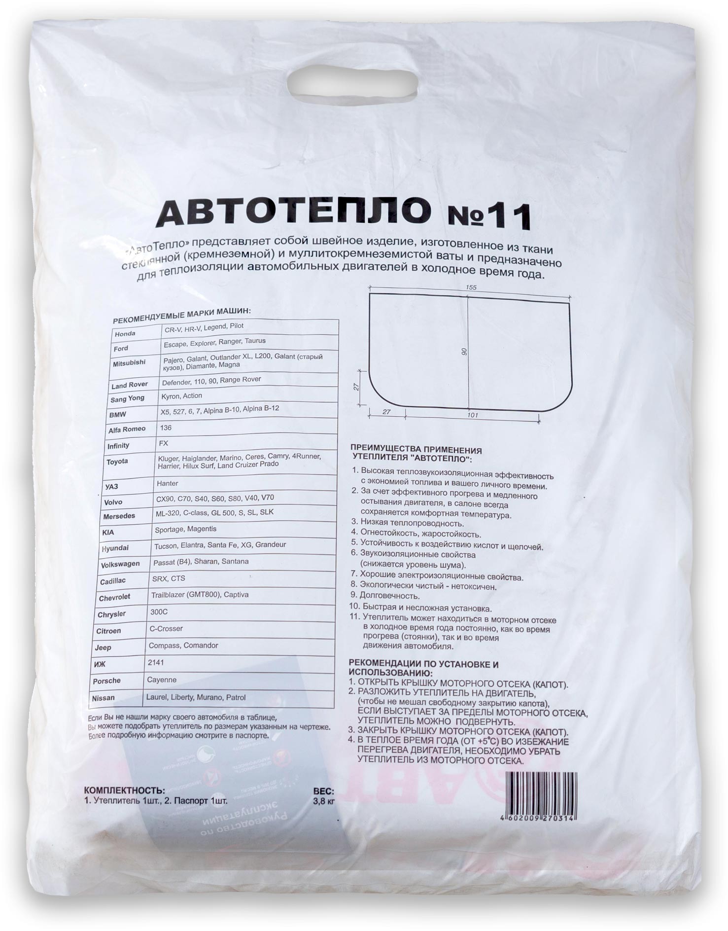 | Тип | Утеплитель двигателя |