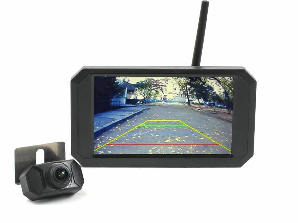 Поставляющийся с задней камерой для автомобиля монитор выполнен в черном пластиковом корпусе и имеет 5-дюймовый экран, на который выводится текущее изображение с подключенной AHD камеры, автоматически включающейся при начале парковки по беспроводному соединению. Комплект из камеры заднего вида с монитором включает в себя провода питания для обоих устройств, крепление и адаптер питания монитора от прикуривателя. Для передачи изображения с камеры на монитор провод не нужен.
