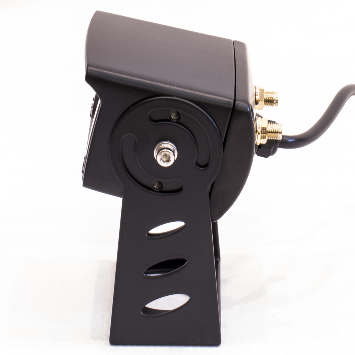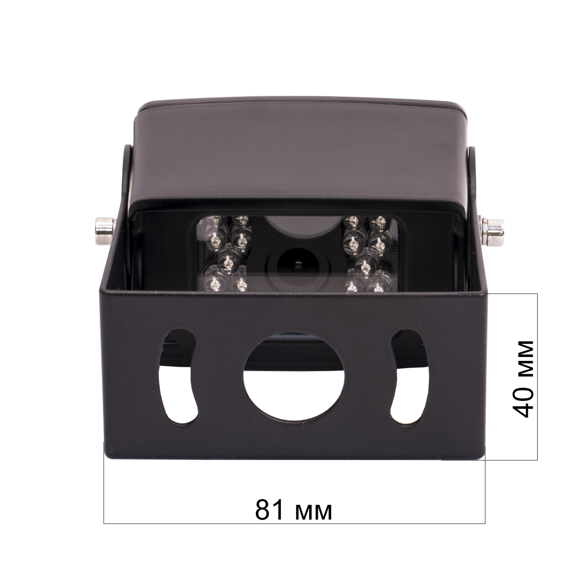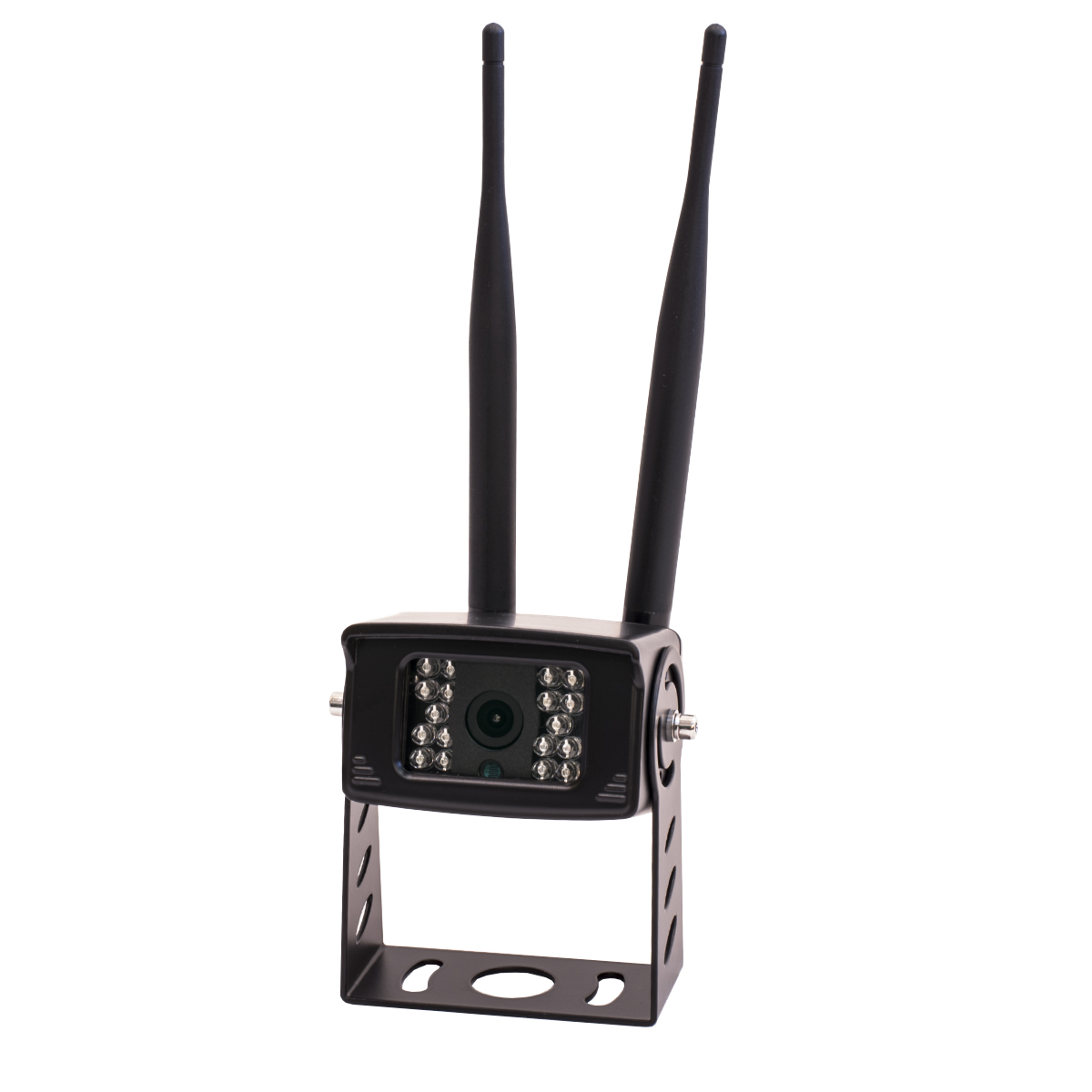 Камера заднего вида для грузовиков изготовлена из металла и обладает максимальной степенью защиты от влаги и пыли IP69K. Интегрированная подсветка, состоящая из 18 инфракрасных диодов, обеспечивает качественную видеосъёмку в любое время суток. Угол обзора беспроводной автомобильной камеры составляет 140 градусов.