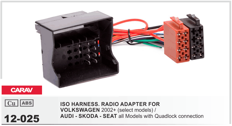 ISO-переходник для а/м VOLKSWAGEN Golf, Passat, Touareg, Touran 2002+ / AUDI All models with Quadlock / SKODA All models with Quadlock / SEAT All models with Quadlock