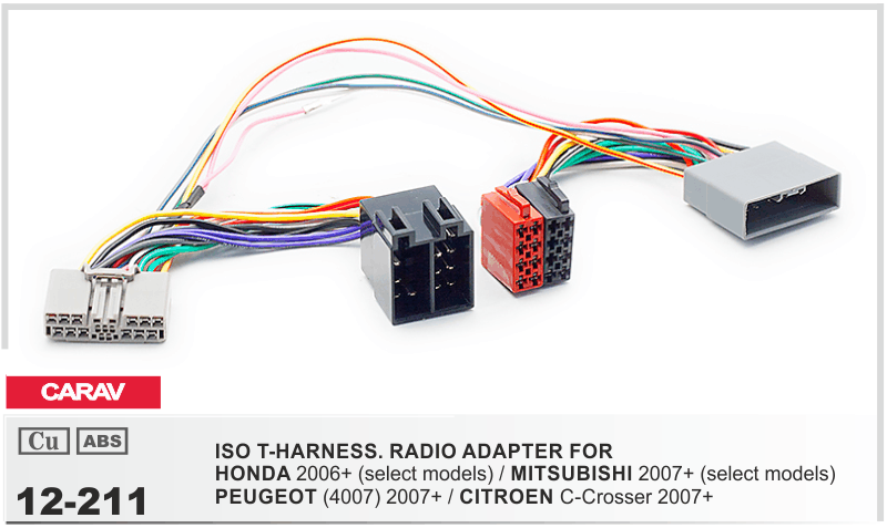 Штатный разъем (male) + ISO (female) <---> CARAV 12-211 <---> Штатный разъем (female) + ISO (male) / HONDA 2006+ (select models) / MITSUBISHI 2007+ (select models) / PEUGEOT (4007) 2007+ / CITROEN C-Crosser 2007+