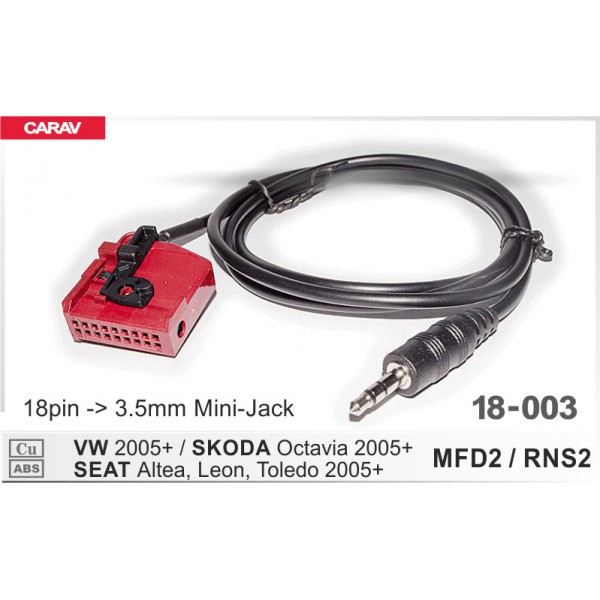 VOLKSWAGEN 2005+ / SKODA Octavia 2005+ / SEAT Altea, Leon, Toledo 2005+ (MFD2 / RNS2) 18pin -> 3.5mm Mini-Jack (m)