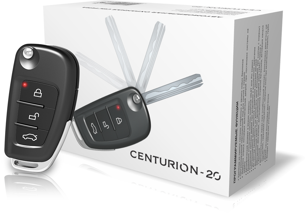 Особенность Centurion 20 это стильный брелок с выкидным ключом. В комплекте 2 заготовки для распространенных типов автомобильных ключей. Также в брелок можно установить ключ другого типа, если заготовка из комплекта не подходит. В корпусе брелока предусмотрено место для установки ЧИПа штатного иммобилайзера.