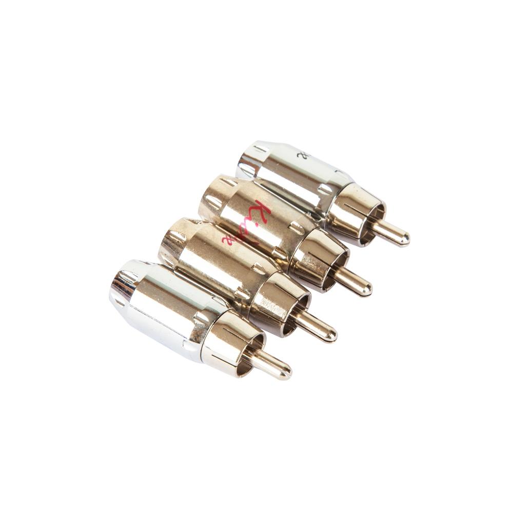 Комплект из 4-х прямых металлических RCA коннекторов в упаковке, наконечники с никилерованным покрытием.