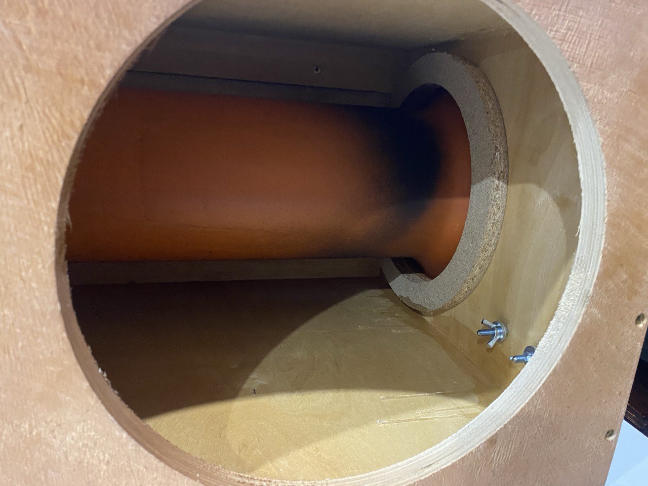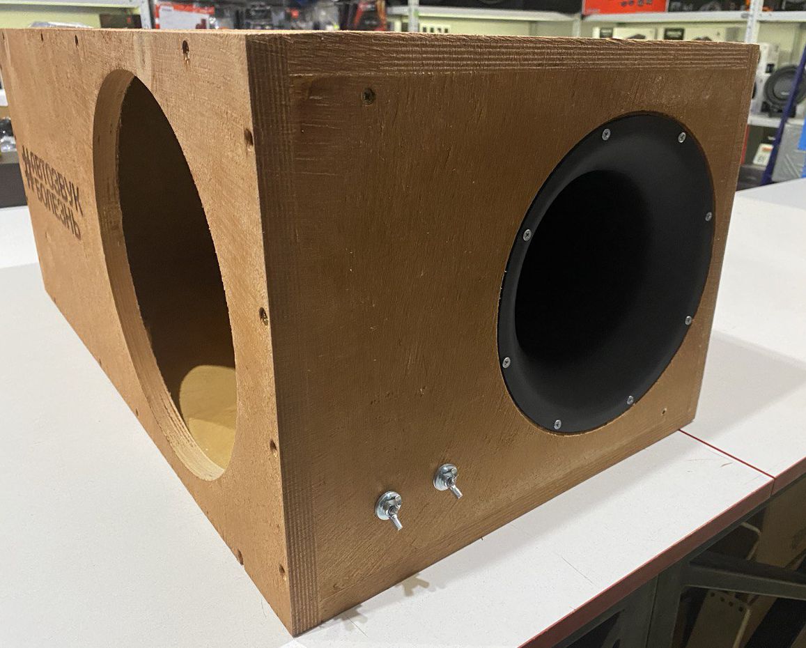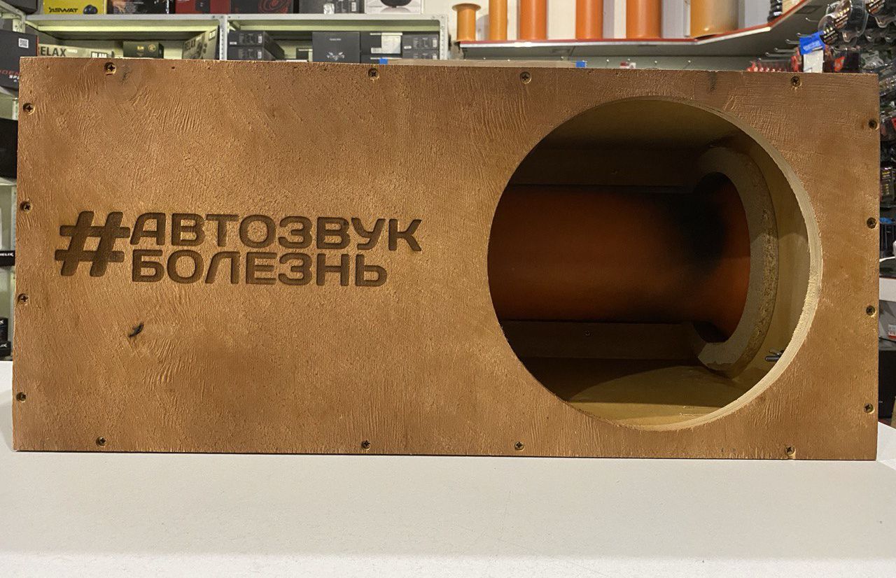 Корпус автомобильного сабвуфера 30 см (12 дюйм.) с трубой (морилка/гравировка)