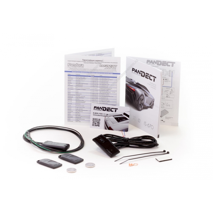 Иммобилайзер Пандект 670 представляет собой противоугонное устройство, состоящее из трех компонентов — центрального блока, реле блокировки и брелока-метки.