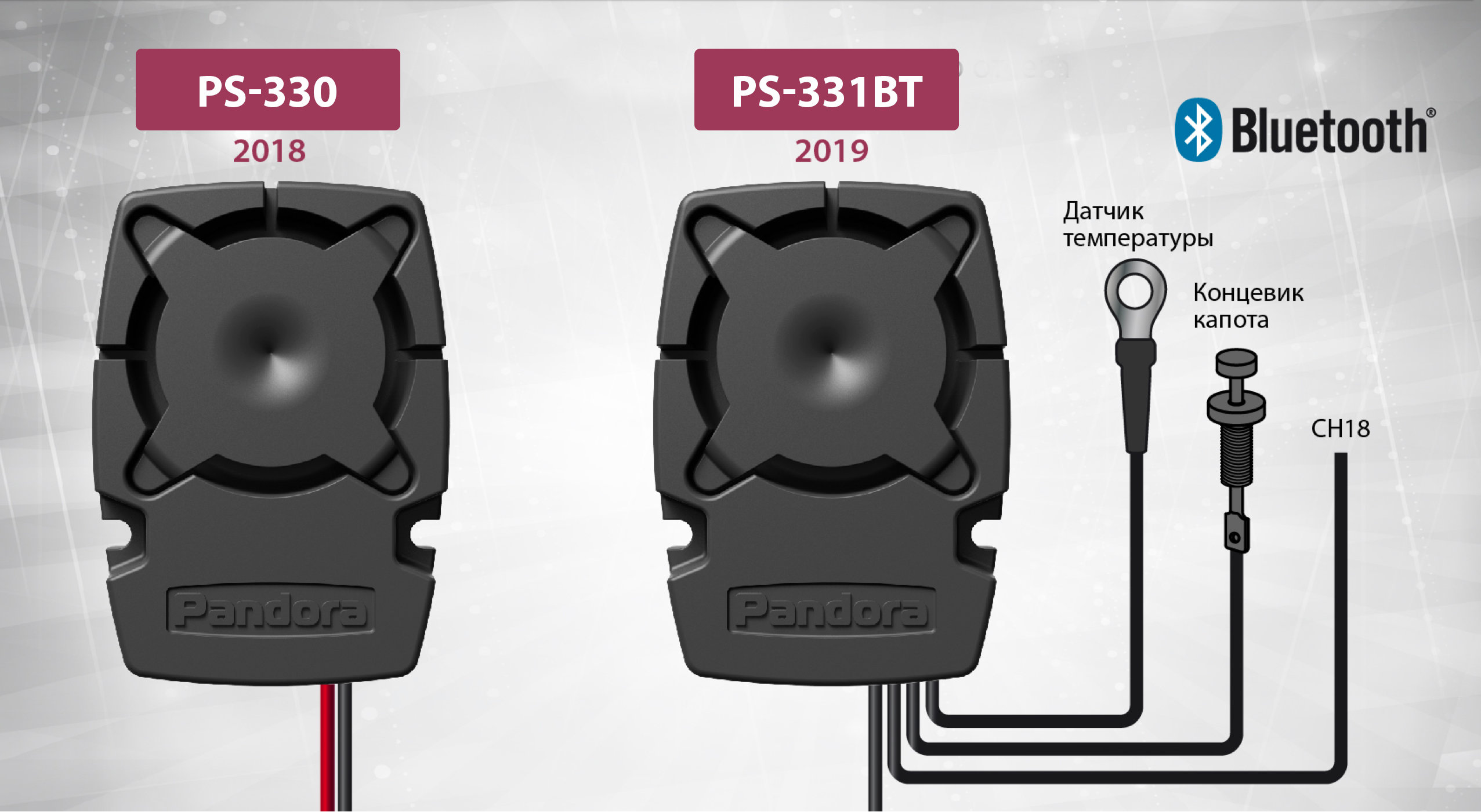 Электронная начинка ее содержит Bluetooth-трансивер, выход дополнительного канала, который можно назначит как блокировку или любую другую логику, вход концевика капота и выносной термодатчик двигателя – словом все самое необходимое, что может понадобиться иметь под капотом для охранно-сервисной системы с автозапуском двигателя для эксплуатации в России.