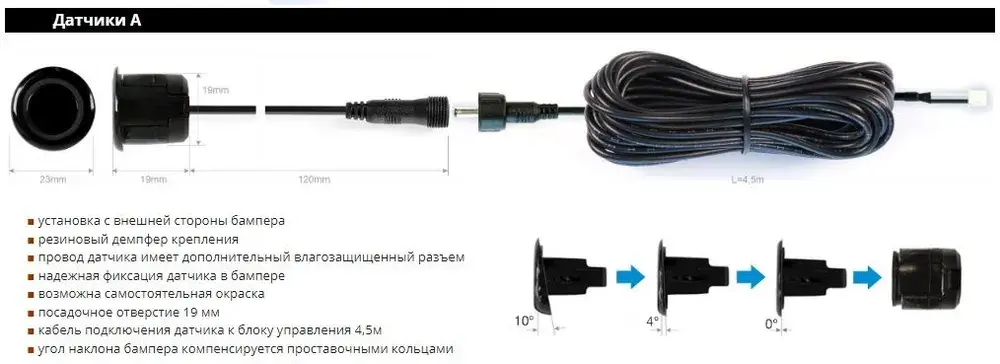 | Место установки датчиков | задний бампер/передний бампер |