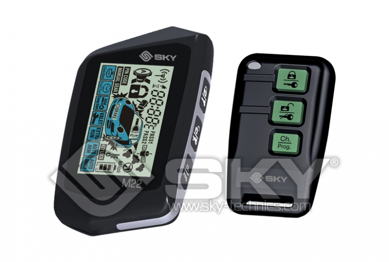 SKY M22 — это надежная автомобильная сигнализация с обратной связью и хорошим набором функций, двумя брелоками (один из них имеет ЖК дисплей) в комплекте и автозапуском двигателя. Система легко устанавливается, в комплекте идут все необходимые для этого провода. Работает на основе динамического кодирования, что позволяет гарантировать хорошую степень защиты от перехвата сигнала. Сигнализация отлично подойдет тем, кто хочет получить простую, но функциональную систему. Она выполняет автоматически заложенные в нее функции, а также управляется удаленно нажатием соответствующих кнопок на брелоках.