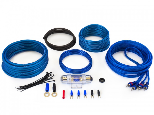 В состав установочного комплекта проводов Sound Quest SQK4 входят силовые кабели ССА (омедненный алюминий) калибра 8 Ga, межблочный кабель (витая пара), CCA-акустический кабель, монтажный кабель, держатель предохранителя AGU 60 А, клеммы, защитная гофра.