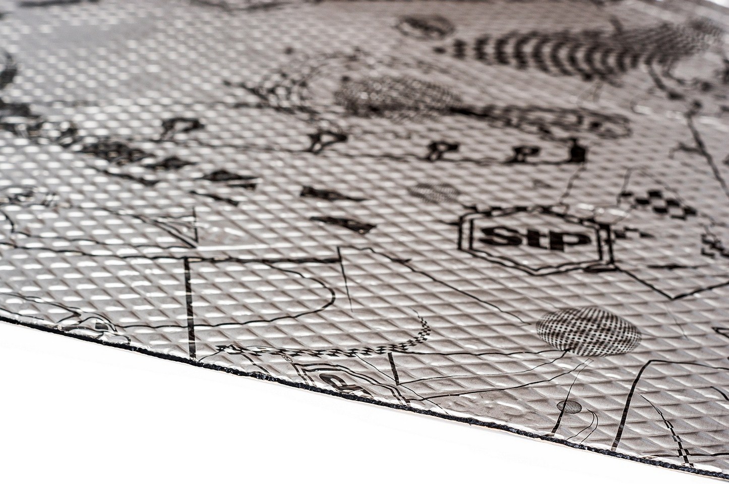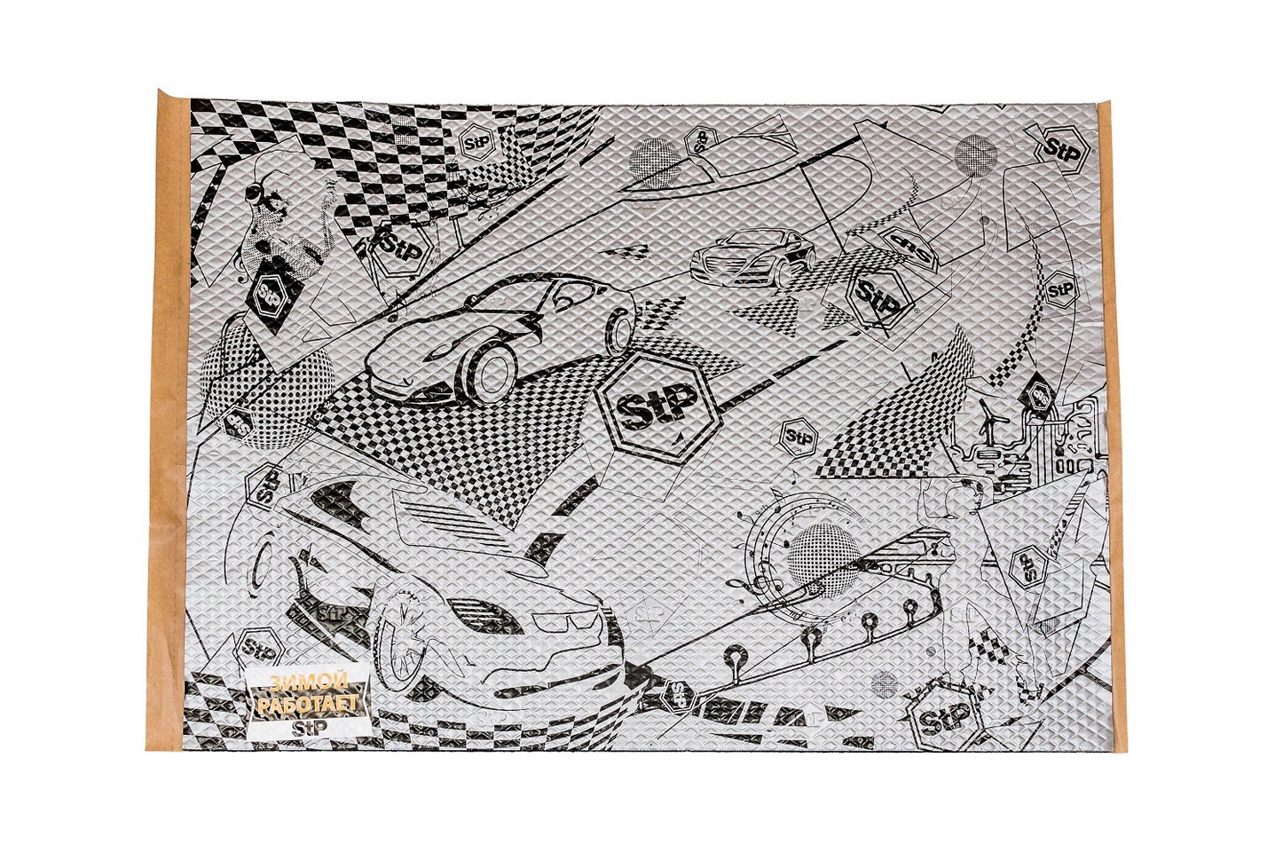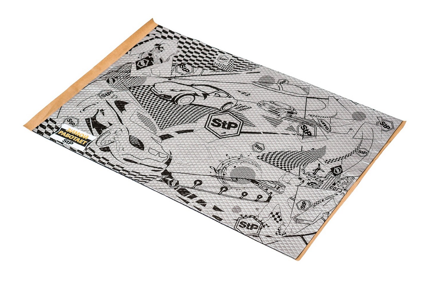 Лицевое покрытие фольга серебряного цвета и тиснением «ромб», на покрытии имеется характерный рисунок с логотипом StP