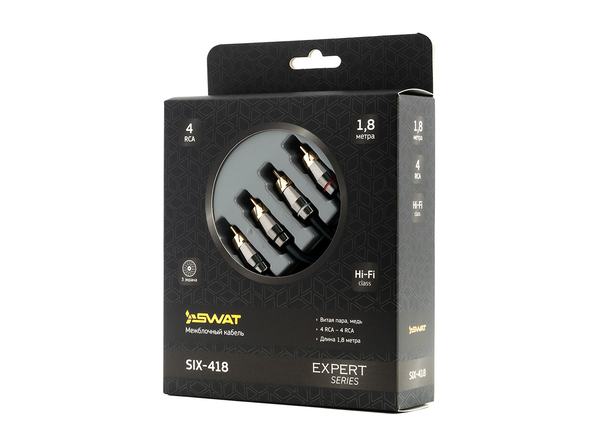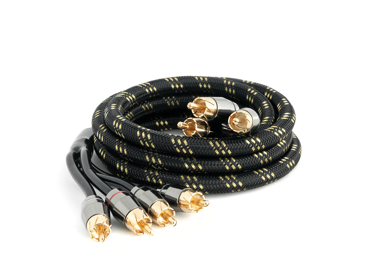 RCA разъемы: Покрытие - позолота. Материал: Латунные, компактные, герметичные в местах пайки, с идентификаторами каналов. Центральный контакт и юбка разрезные, для улучшенного контакта. Длина - 35 мм.