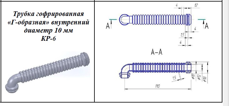 Трубка КР-6 гофра тонкая Г-образная